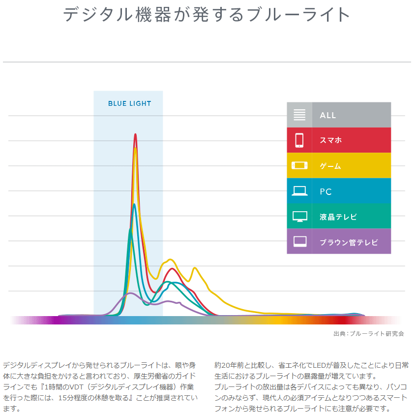 簡單來說就是光波長380~495nm左右的藍光,是對於我們的眼睛是不好的。而現在每個人不是盯螢幕就是盯手機,再不然就電視。對於眼睛的傷害很大。