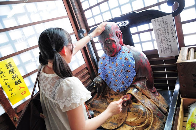 | ▲相傳只要撫摸賓頭盧尊者即可治癒疾病,所以佛像都掉漆了。 |