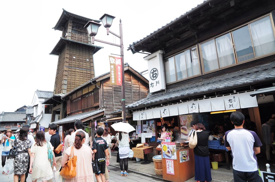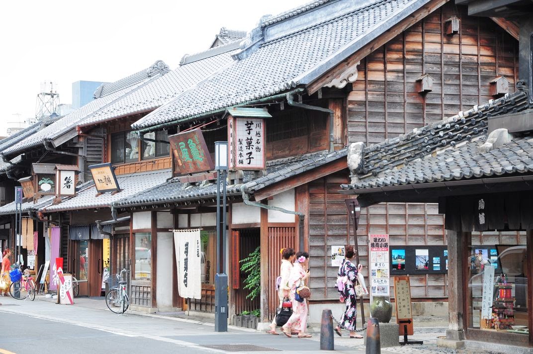 川越從前是江戶(東京舊稱)北邊要地,同時也是川越藩的城邑。以新河岸川與川越街道連結江戶地區,人員與貨物往來頻繁,整個城鎮充滿活力朝氣。由於川越在經濟與文化上與江戶關係密切,因此又被䁥稱為「小江戶」,意思是「像江戶般的小鎮」。(轉自小江戶川越觀光協會)所以這邊有很多古色古香的老房子,以及街道可以看。其中的「菓子店橫丁」、「時鐘塔」,都還有入選「かおり風景100選」與「日本の音風景100選」。是相當值得一看的景色。