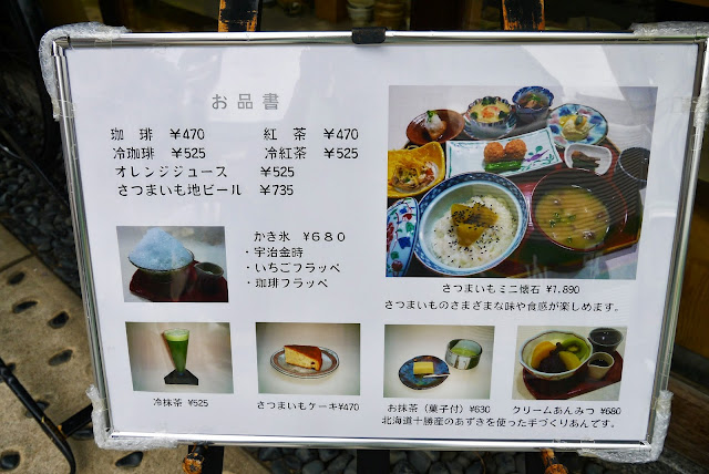大致逛完老街也差不多餓了,所以我們就去找之前在車站遊客中心的伯伯推薦的地瓜料理去吃。聽說還可以品嚐到連日本國內都還罕見的「蕃薯懷石料理」。