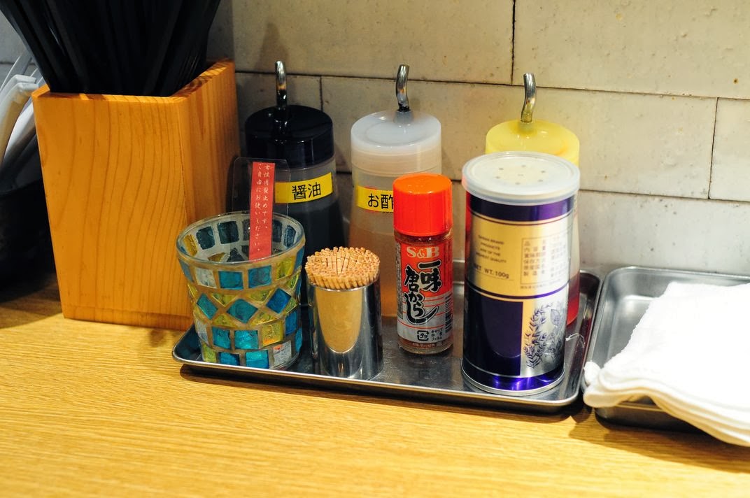 | ▲桌上醬料,還有橡皮筋給女生綁頭髮用。 |