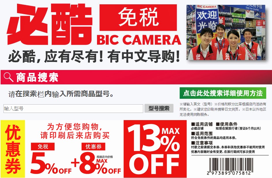 ▲BIC CAMERA部分商品可打到87折,不過是要買超過10001yen以上才可以退稅喔(優惠卷) |