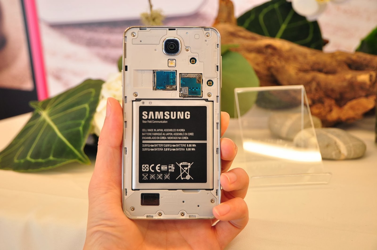 圓弧的機身有些許珠光色澤。可開啟的背蓋很薄很有韌性,極細緻的髮絲紋路,也顯示著Samsung對於質感的提升。