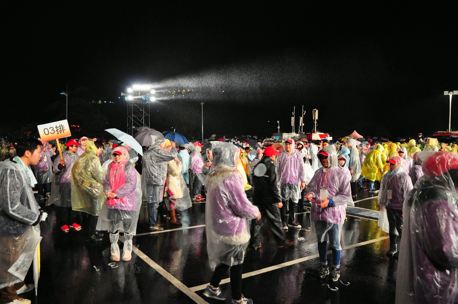 老街隨便吃吃後,就馬上到活動會場去等了。不過一直都在下雨,只好到遊客中心避難。還發現工作人員正在試燈。哈哈