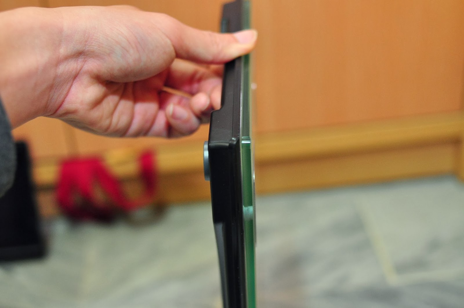 其實還有體重計是會拿把手那種,不過那種又大又肥。實在不符合我想要的。